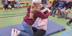 Außerdem erhielten die jungen Helferinnen und Helfer viele Tipps und Anregungen, wie sie als Pausensanitäter eingesetzt werden und wie sie sich im Ernstfall richtig verhalten sollen. Die Kinder waren sehr interessiert, hatten viel Spaß und gingen mit großer Freude bei der Sache mit.