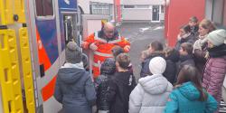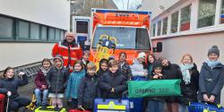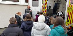 Außerdem wurden der Tragestuhl, die Trage, der Beatmungsbeutel mit Sauerstoffflaschen sowie verschiedene Materialien wie Spritzen, Nadeln und Notfallrucksäcke vorgestellt. Zum krönenden Abschluss durften alle noch das Blaulicht sehen und das Signalhorn hören.
