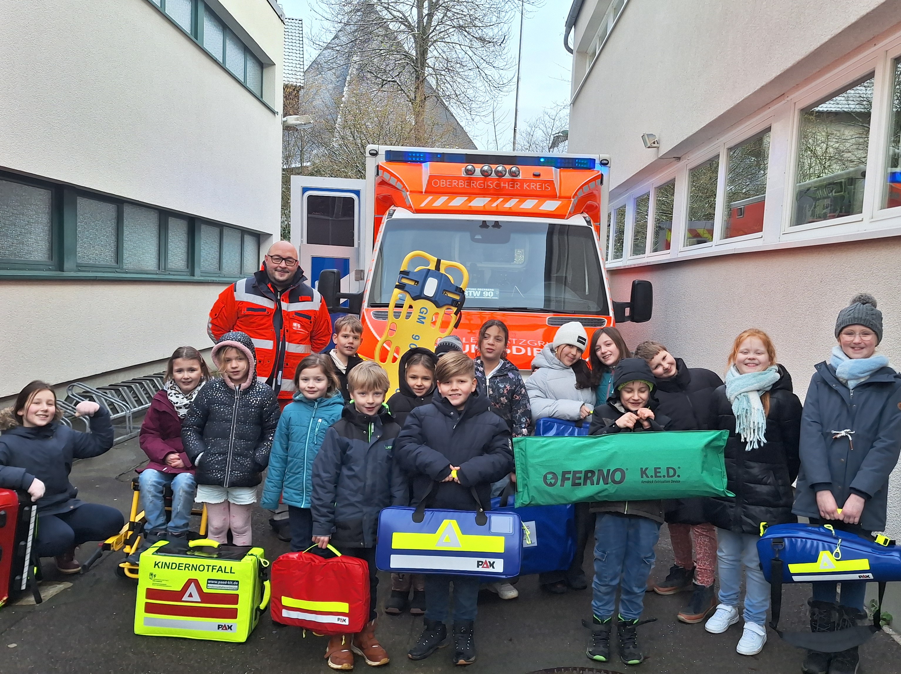 Für die Schülerinnen und Schüler war die Besichtigung ein echtes Highlight ihrer Ausbildung. Wir bedanken uns herzlich beim Rettungsdienst des Oberbergischen Kreises für den Besuch und die anschauliche Vorstellung des Berufs des Notfallsanitäters. Die Aktion sollte auch zeigen, dass Kinder keine Angst vor einem Rettungswagen haben müssen. Durch das Kennenlernen der Fahrzeuge und der Arbeit der Sanitäterinnen und Sanitäter werden sie mit der Situation vertraut gemacht.