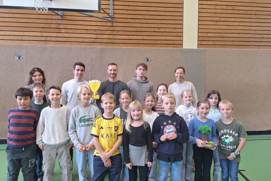 Den “Helfende Hände”-Pokal erhielt Frau Kessler-Thönes für ihre tolle Unterstützung der Erstklässler beim Schulstart. Der “Umweltpokal” ging an die Klasse 2a. Und die Azubis der Ferchau-AG, die im September mit den Kindern der OGS ein neues Hochbeet gebaut und angelegt hatten, erhielten dafür den “Gute Ideen”-Pokal.